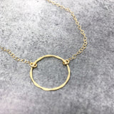 This gold karma necklace is so beautiful. Elegant and perfect for dressing up that little black dress or dazzling at work. This gold hammered circle karma necklace pairs perfectly with our gold karma earrings.