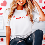 Keep it simple and stylish this Valentine’s Day with our "love" script T-shirt. A timeless design featuring elegant cursive text with a heart accent, making it the perfect blend of love and minimalism.